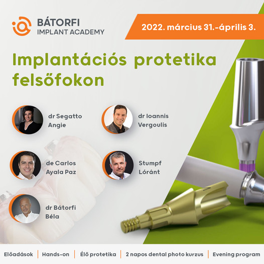 1-2. nap: Implantációs protetika felsőfokon (digitális megoldásokkal), előadások, hands-on kurzusok, élő protetika, élő demonstrációk 3-4. nap: "From macro to micro"- A világ első számú fogászati fotósa, Carlos Ayala Paz kétnapos dentalphoto kurzusa Kelet-Közép-Európában először!