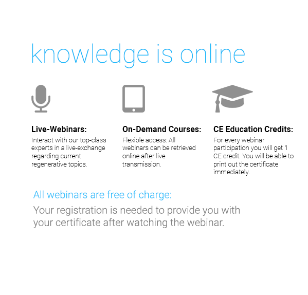 A botiss biomaterials évek óta sikeresen működteti online oktatási platformját, a botiss WEBINARS-t , ahol ingyenes regisztrációt követően kapcsolódhatnak be az élő adásokba. Az előadások alatt a chat felületen tehetik fel kérdéseiket, melyekre az adott orvos az előadás után válaszol.